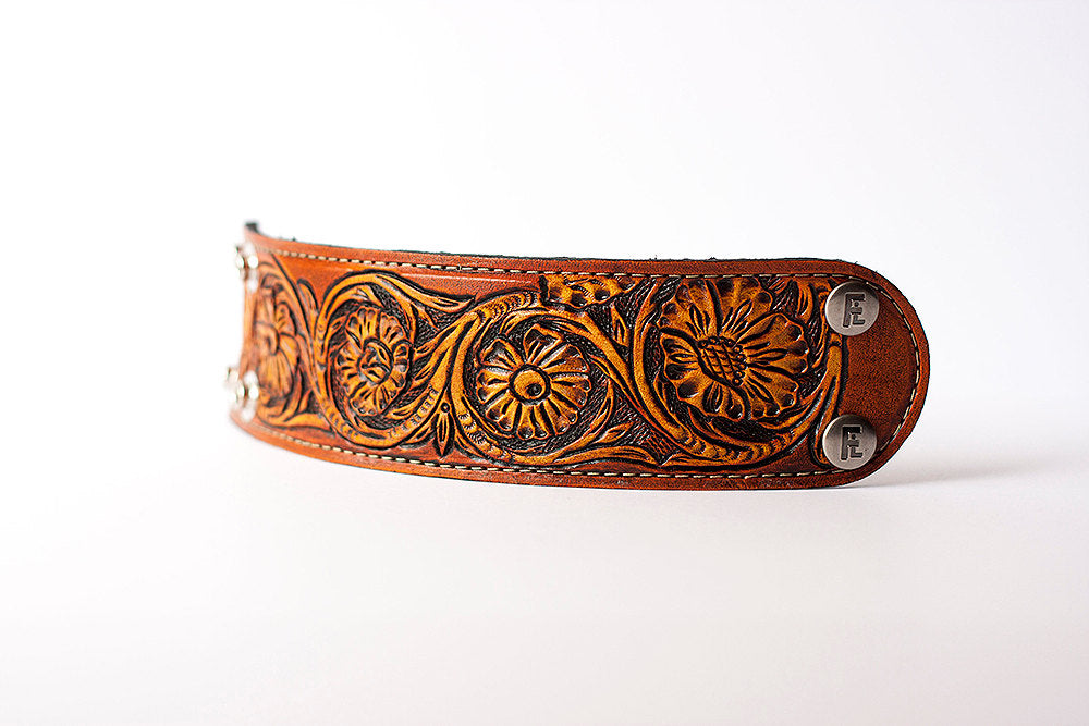 READY TO SHIP/Hand Tooled Leather Cuff/Floral